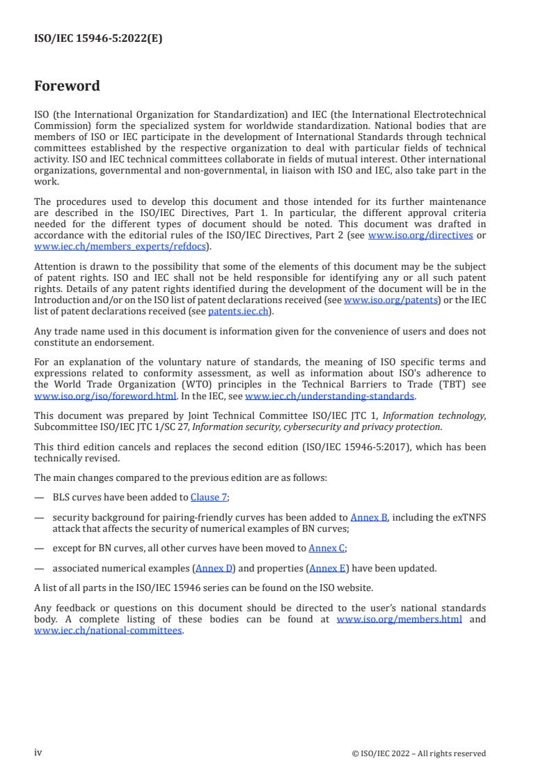 - ISO/IEC 29192‑4, 9796‑3, 11770‑3, 14888‑3, 18033‑2, 18033‑5 (as listed in the scope)