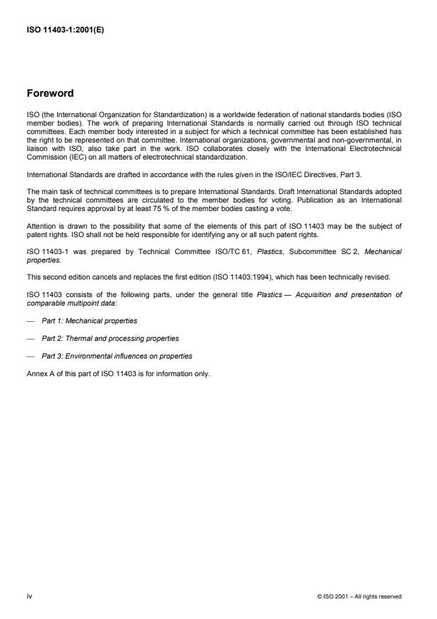 ISO 11403-1:2001 - Plastics -- Acquisition and presentation of comparable multipoint data