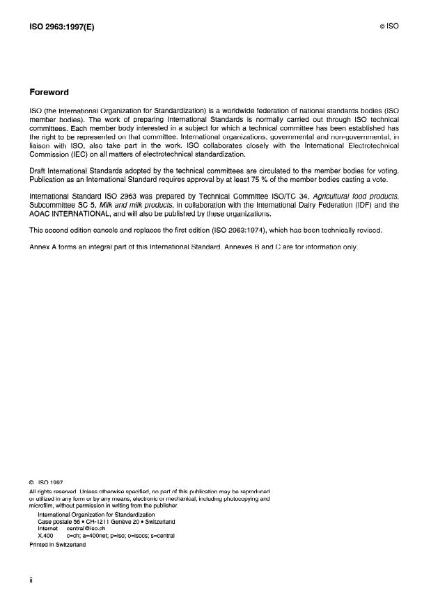 International Standard IS0 2963 was prepared by Technical Committee lSO/TC 34, Agricultural food products,