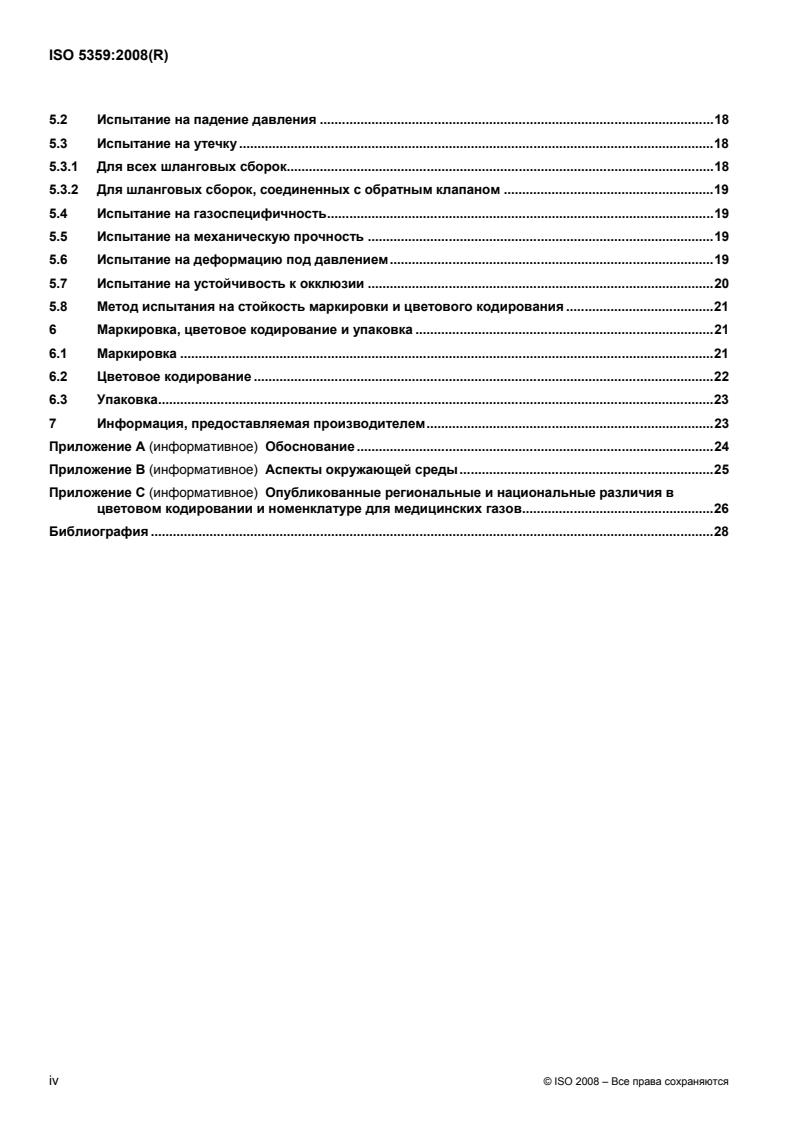 L'ISO 5359:2008 spécifie les exigences requises pour les flexibles de raccordement à basse pression destinés à être utilisés avec les gaz médicaux suivants: oxygène; oxyde d'azote; air médical; hélium; dioxyde de carbone; xénon; mélanges spécifiés des gaz précités; air enrichi en oxygène; air pour les instruments chirurgicaux; azote pour les instruments chirurgicaux; vide. Elle est en particulier destinée à garantir la spécificité par rapport au gaz et à empêcher toute interversion entre systèmes transportant des gaz différents. Ces flexibles sont destinés à être utilisés avec des pressions maximales de service inférieures à 1 400 kPa. L'ISO 5359:2008 spécifie l'affectation des raccords à tête filetée non interchangeables (NIST), des systèmes de sécurité à diamètres indexés (DISS) et des raccords à manchons indexés (SIS) aux gaz médicaux et spécifie les dimensions des raccords à tête filetée non interchangeables (NIST).