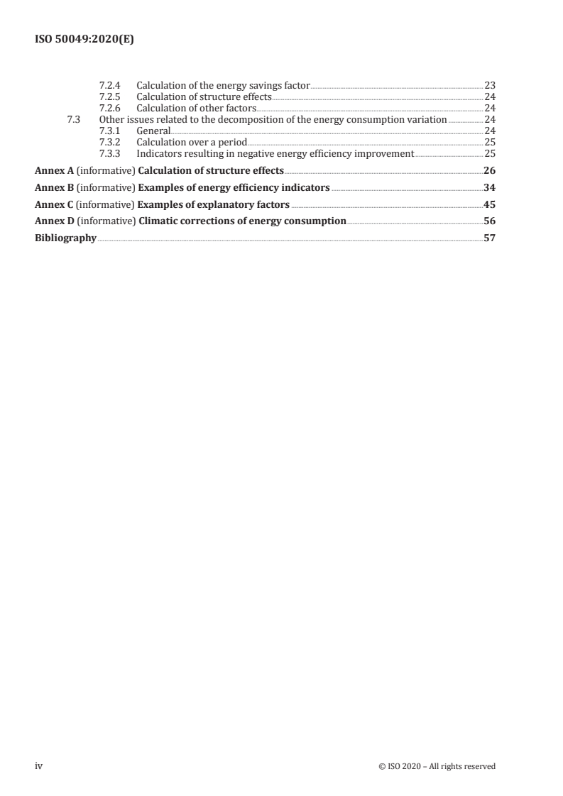 ISO 50049:2020 is a standard published by the International Organization for Standardization (ISO). Its full title is "Calculation methods for energy efficiency and energy consumption variations at country, region and city levels". This standard covers: This document gives guidelines for methods for analysing changes in energy efficiency and energy consumption, and for measuring energy efficiency progress, for countries, regions and cities. It is composed of three different calculation methods: — evaluation of structure effects in the variation of energy intensity; — calculation of energy efficiency indices; — decomposition analysis of energy consumption variation. This document is applicable to providing an aggregated statistical evaluation for a country, region or city. It does not apply to calculating changes in the energy consumption or in energy efficiency at the individual consumer's level (e.g. households, organizations, companies).