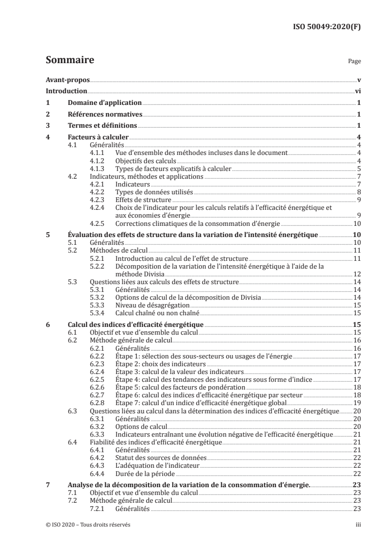 Le présent document fournit des lignes directrices sur les méthodes permettant d'analyser l'évolution de l'efficacité énergétique et de la consommation d'énergie, et de mesurer les progrès en matière d'efficacité énergétique, aux niveaux national, régional et urbain. Il se compose de trois méthodes de calcul différentes: — évaluation des effets de structure dans la variation de l'intensité énergétique; — calcul des indices d'efficacité énergétique; — analyse de la décomposition de la variation de la consommation d'énergie. Le présent document permet de fournir une évaluation statistique agrégée d'un pays, d'une région ou d'une ville. Il ne s'applique pas au calcul de l'évolution de la consommation d'énergie ou de l'efficacité énergétique au niveau de consommateurs individuels (par exemple, ménages, organisations, entreprises).