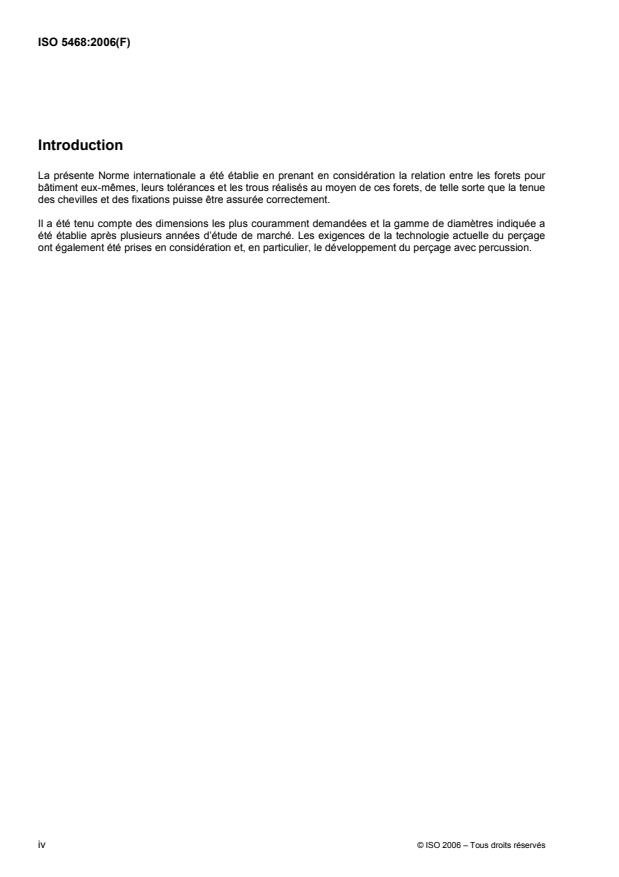 L'ISO 5468:2006 spécifie les dimensions, en millimètres, des forets pour bâtiment, à rotation et percussion, à plaquettes en métal-dur (carbures métalliques), c'est-à-dire leur diamètre dans la gamme de 4 mm à 25 mm inclus et leurs longueurs totale et utile dans les séries courte, longue et extra-longue. Elle ne s'applique pas aux forets pour marteaux.