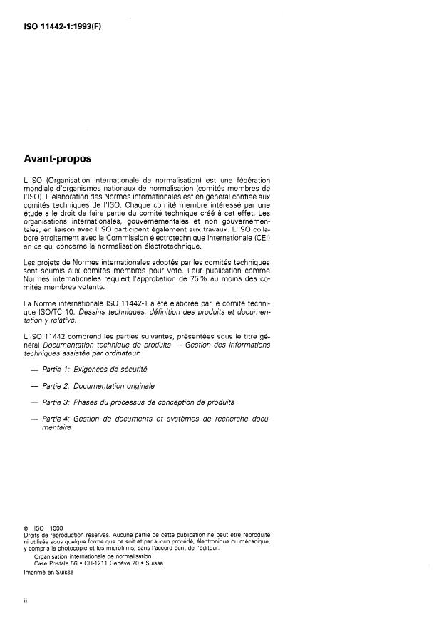 ISO 11442-1:1993 - Documentation technique de produits -- Gestion des informations techniques assistée par ordinateur
