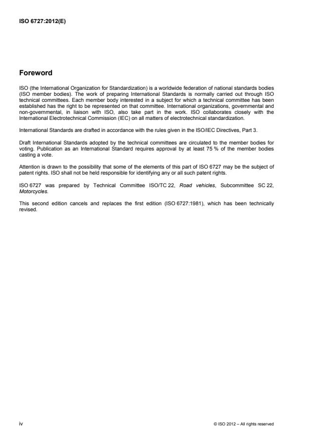 ISO 6727 was prepared by Technical Committee ISO/TC 22, Road vehicles, Subcommittee SC 22,