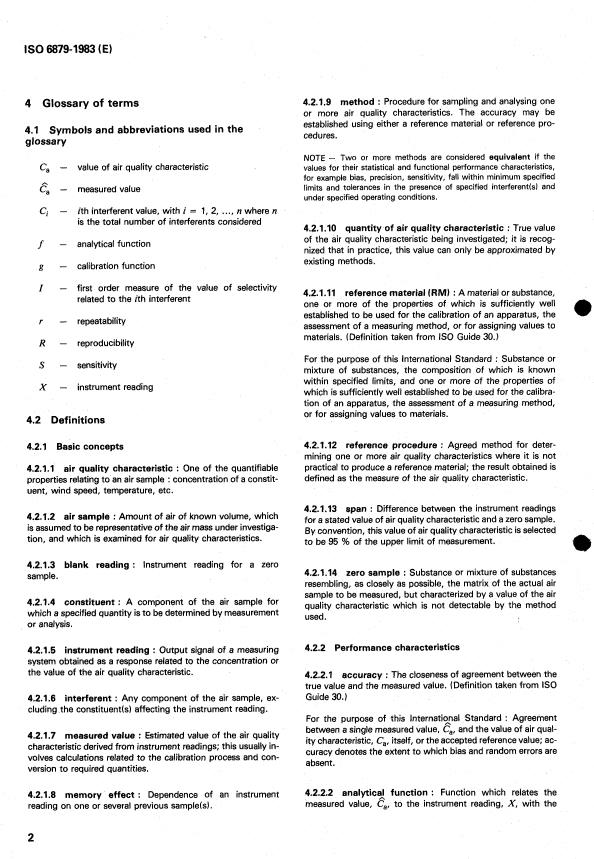 ISO 6879:1983 is a standard published by the International Organization for Standardization (ISO). Its full title is "Air quality — Performance characteristics and related concepts for air quality measuring methods". This standard covers: Air quality — Performance characteristics and related concepts for air quality measuring methods