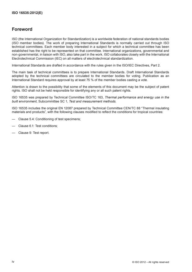 ISO 16535 includes the original EN 12087 prepared by Technical Committee CEN/TC 88 “Thermal insulating