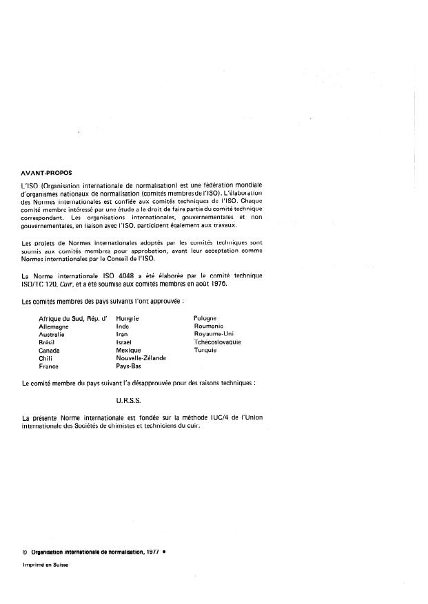 ISO/TC 120, Cuir, et a été soumise aux comités membres en août 1976.