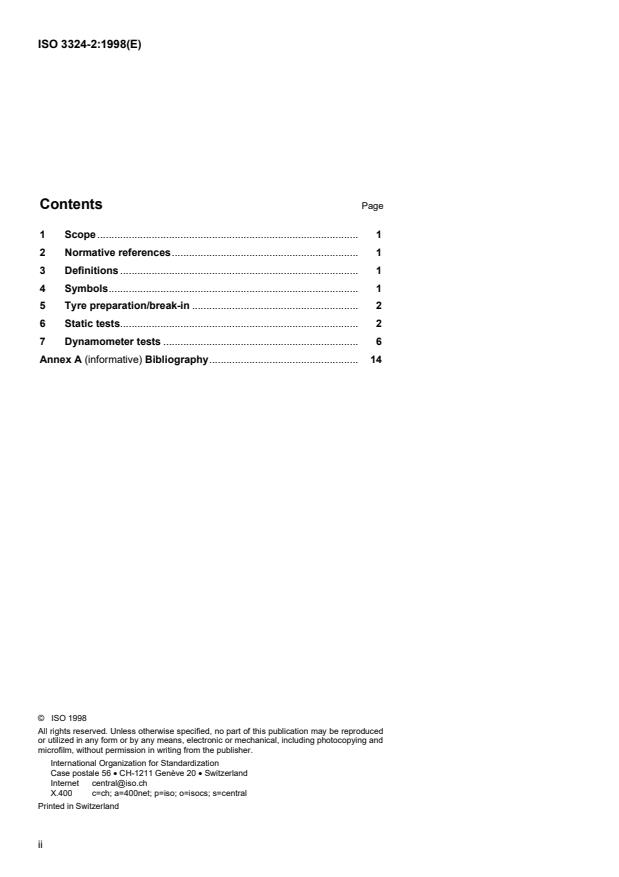 ISO 3324-2:1998 is a standard published by the International Organization for Standardization (ISO). Its full title is "Aircraft tyres and rims — Part 2: Test methods for tyres". This standard covers: Aircraft tyres and rims — Part 2: Test methods for tyres
