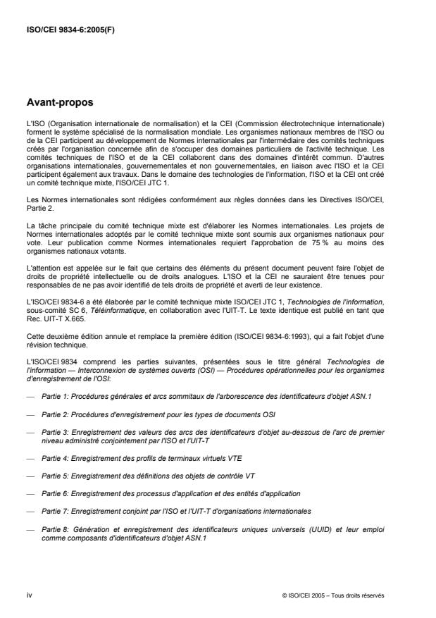 Cette deuxième édition annule et remplace la première édition (ISO/CEI 9834-6:1993), qui a fait l'objet d'une