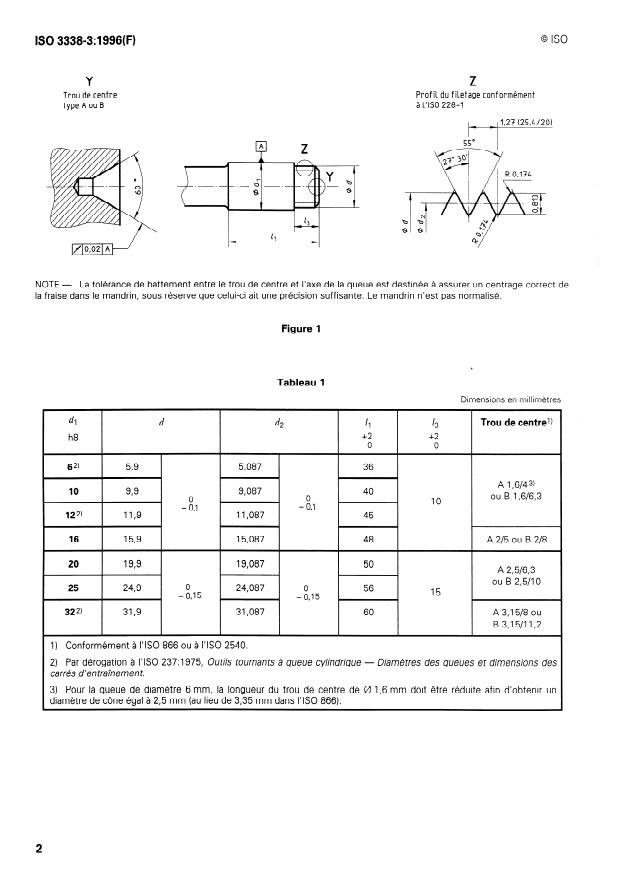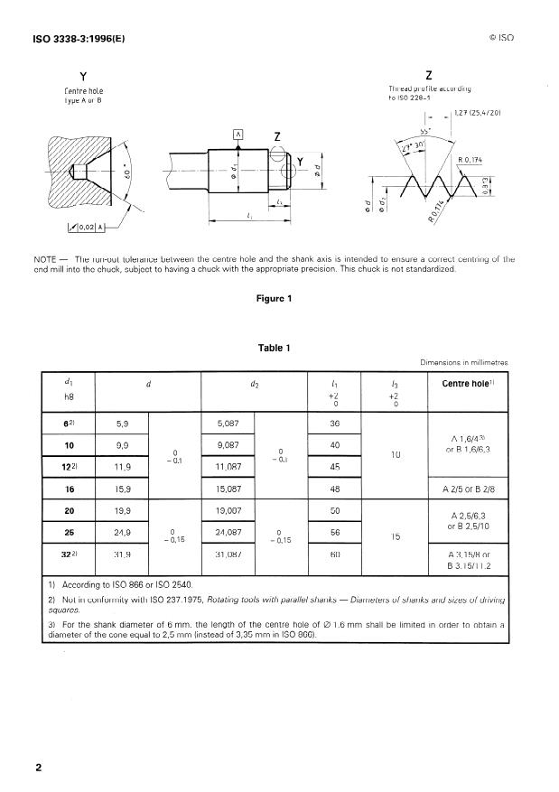 Keywords: ISO 3338-3, threaded shanks, milling cutters, shank dimensions, centre hole, ISO 228-1, tool standards, run-out tolerance.