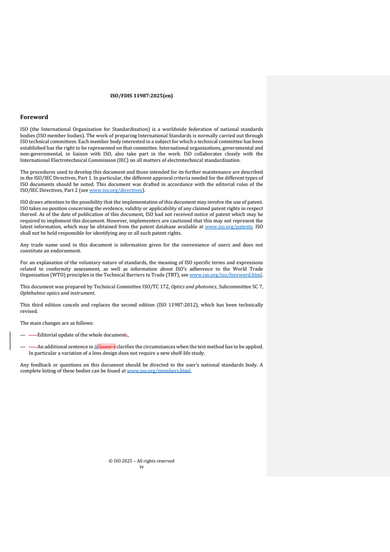 REDLINE ISO/FDIS 11987 - Ophthalmic optics — Contact lenses — Determination of shelf-life Released:19. 09. 2025