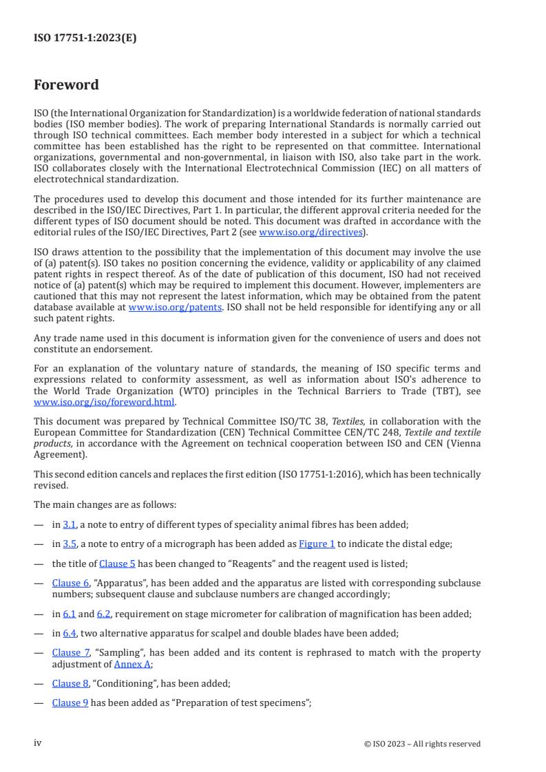 - Annexes: Normative drawing of sampling (Annex A), decolouration guidance (Annex B), micrographs/surface morphology for fibre identification (Annex C) and fibre densities (Annex D).