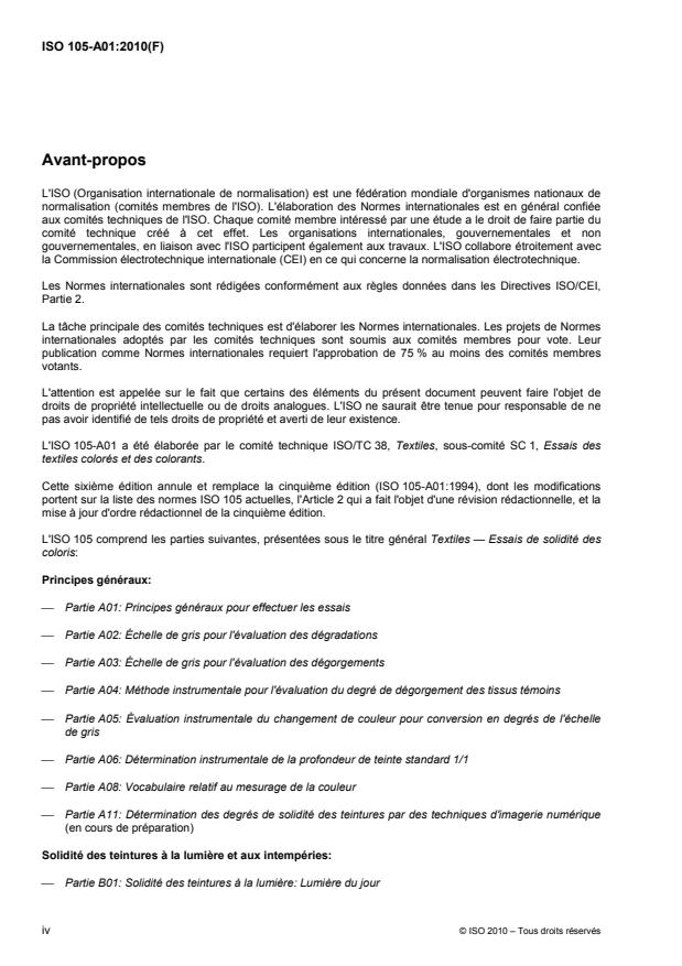 diverses parties de l'ISO 105, se renseigner auprès des organisations suivantes par messagerie ou par courrier, en