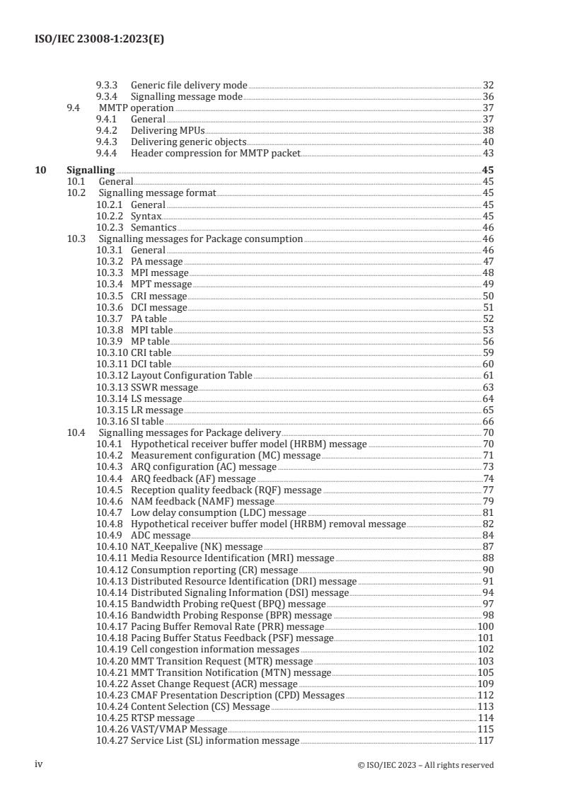 - Signalling messages: Formats and semantics for discovering media locations, delivery configuration and runtime control (e.g., PA, MPI, MPT and many other signalling message types listed in the standard).