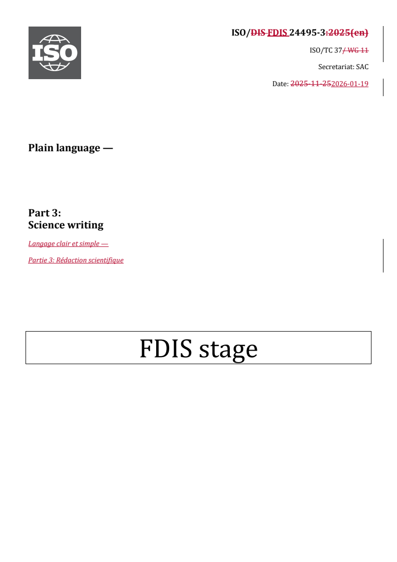 REDLINE ISO/FDIS 24495-3 - Plain language — Part 3: Science writing Released:20. 01. 2026