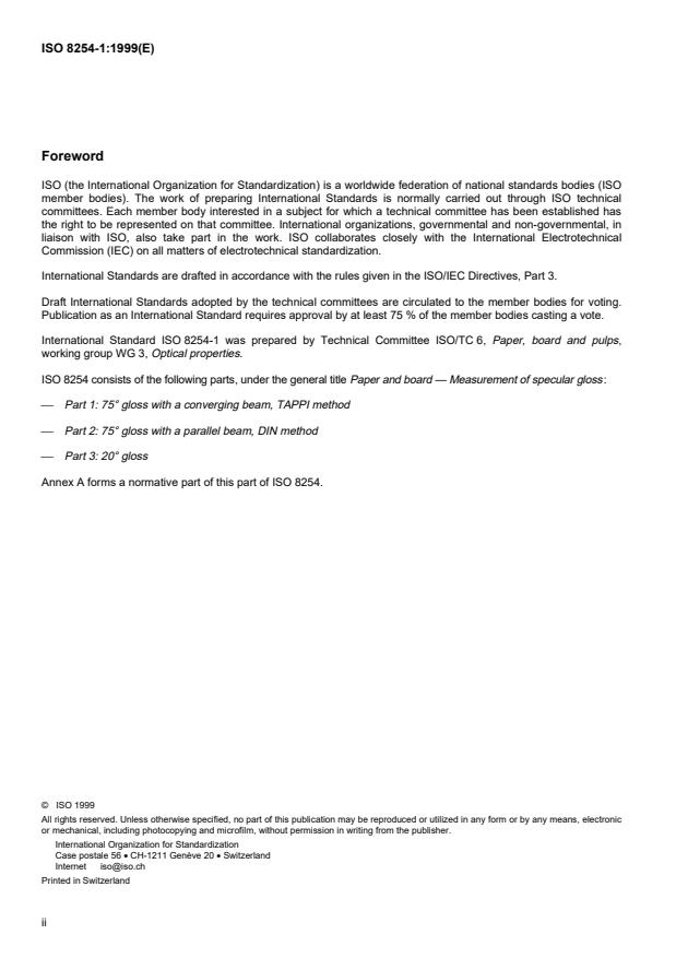 ISO 8254 consists of the following parts, under the general title Paper and board — Measurement of specular gloss :