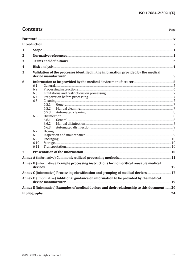 Keywords: ISO 17664-2, processing of medical devices, non‑critical medical devices, cleaning and disinfection, medical device reprocessing, manufacturer processing instructions, validation, risk analysis.