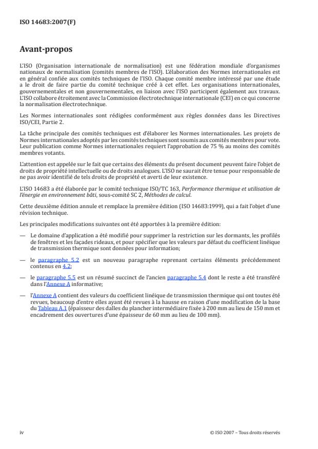 L'ISO 14683:2007 traite des méthodes simplifiées pour la détermination des flux de chaleur à travers les ponts thermiques linéaires qui se produisent aux jonctions de parois de bâtiments. L'ISO 14683:2007 établit des exigences concernant les catalogues de ponts thermiques et les méthodes manuelles de calcul. Des valeurs par défaut des coefficients de transmission thermique linéique sont indiquées dans l'Annexe A pour information.