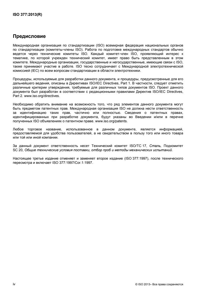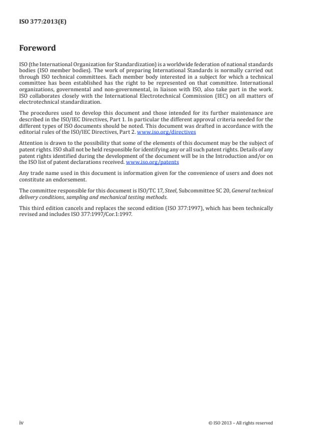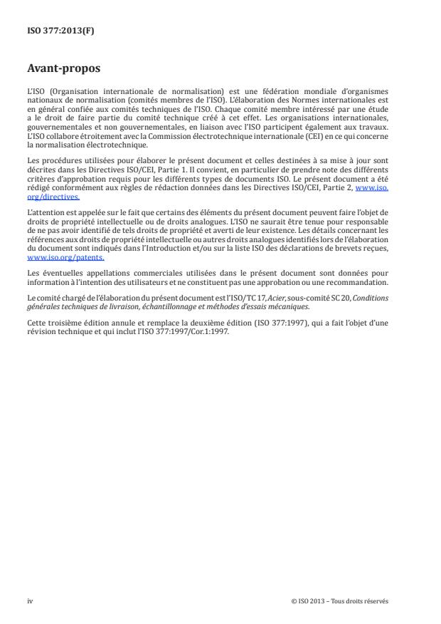 ISO 377:2013 specifies requirements for the identification, location and preparation of samples and test pieces intended for mechanical tests on steel sections, bars, rod, flat products and tubular products as defined in ISO 6929. If agreed in the order, ISO 377:2013 can also apply to other metallic products. These samples and test pieces are for use in tests that are carried out in conformity with the methods specified in the product or material standard or, in the absence of this, in the standard for the test method. Where the requirements of the order or product standard differ from those given in ISO 377:2013, then the requirements of the order or product standard apply.