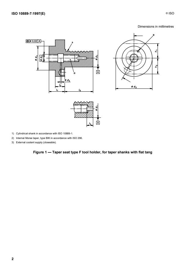 ISO 10889-7:1997 is a standard published by the International Organization for Standardization (ISO). Its full title is "Tool holders with cylindrical shank — Part 7: Type F with taper seat". This standard covers: Tool holders with cylindrical shank — Part 7: Type F with taper seat