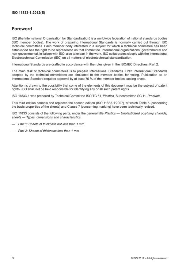 ISO 11833-1:2012 - Plastics -- Unplasticized poly(vinyl chloride) sheets -- Types, dimensions and characteristics