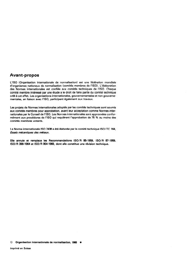 It cancels and replaces IS0 Recommendations ISO/R 85-1959, ISO/R 874959,