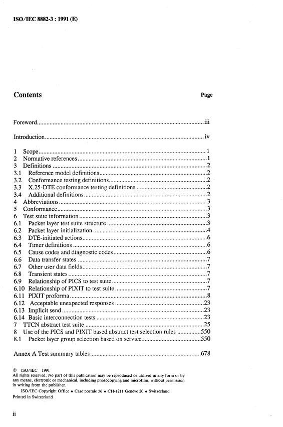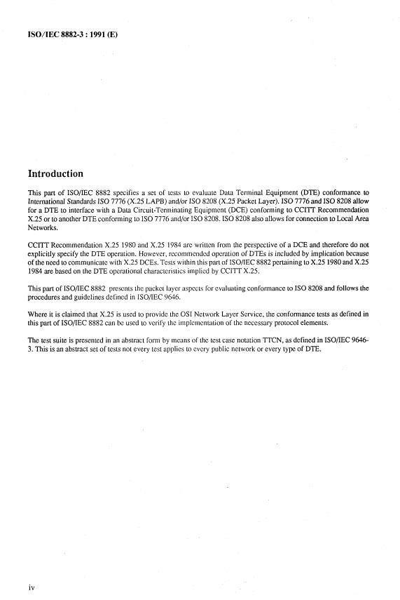 ISO/IEC 8882-3:1991 is a standard published by the International Organization for Standardization (ISO). Its full title is "Information technology — Telecommunications and information exchange between systems — X.25-DTE conformance testing — Part 3: Packet level conformance test suite". This standard covers: Information technology — Telecommunications and information exchange between systems — X.25-DTE conformance testing — Part 3: Packet level conformance test suite