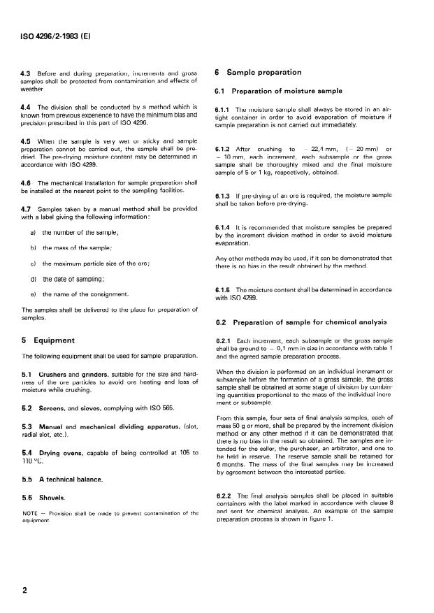 Keywords: ISO 4296-2, manganese ores sampling, sample preparation, riffle divider, moisture determination, chemical analysis, increment sampling, sample division methods.