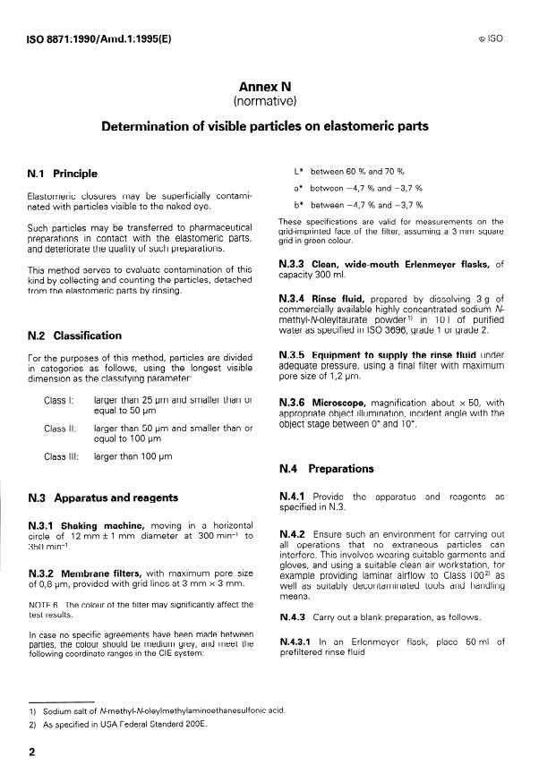 ISO 8871:1990/Amd 1:1995 is a standard published by the International Organization for Standardization (ISO). Its full title is "Elastomeric parts for aqueous parenteral preparations — Amendment 1". This standard covers: Contains minor amendments and adds two new annexes.