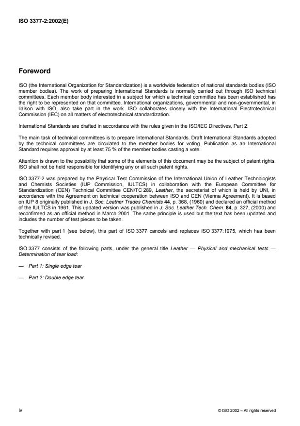 ISO 3377-2 was prepared by the Physical Test Commission of the International Union of Leather Technologists
