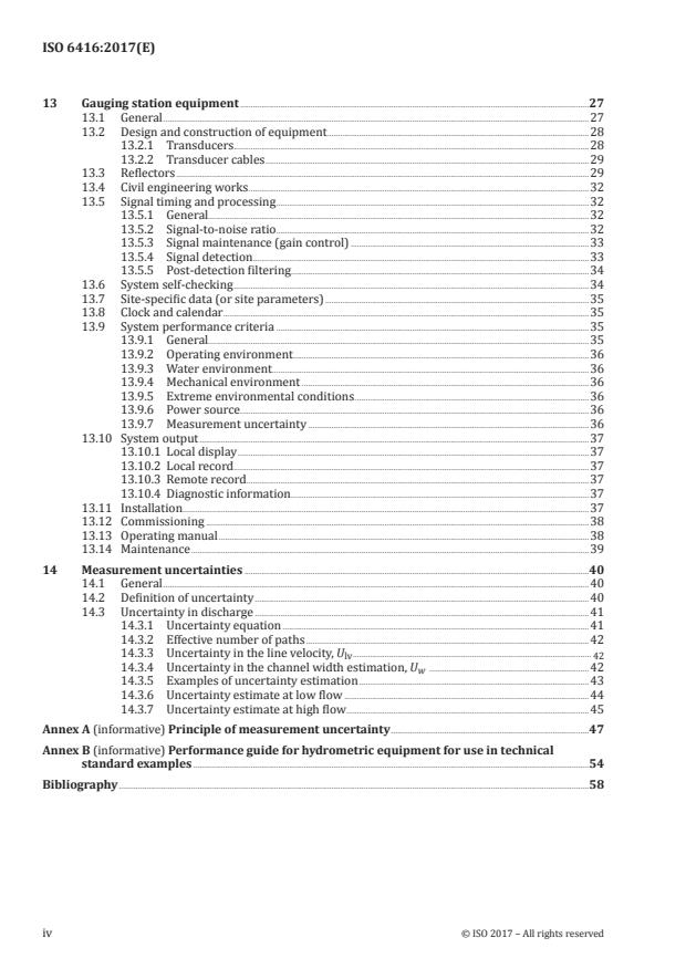 Keywords: ISO 6416, ultrasonic transit time, time of flight, hydrometry, discharge measurement, gauging station, transit-time method, flow measurement, measurement uncertainty.