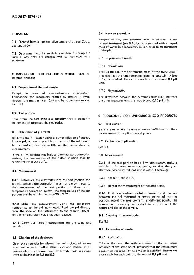ISO 2917:1974 - Meat and meat products -- Measurement of pH (Reference method)