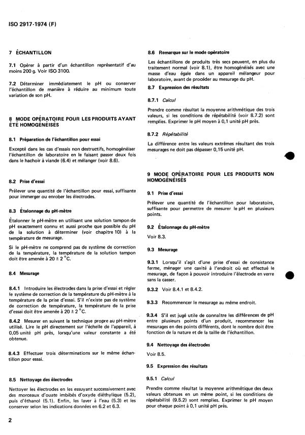 ISO 2917:1974 - Viandes et produits a base de viande -- Mesurage du pH (Méthode de référence)
