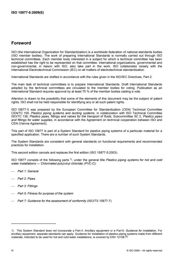 Keywords: ISO 15877-5:2009, PVC‑C piping, fitness for purpose, hot and cold water installations, hydrostatic test, thermal cycling, pressure cycling, solvent cement joints, mechanical joints.