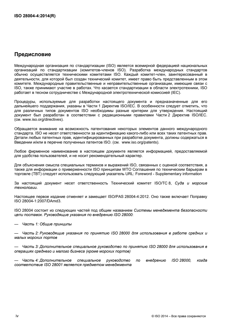 Настоящее первое издание отменяет и замещает ISO/PAS 28004-4:2012. Оно также включает Поправку