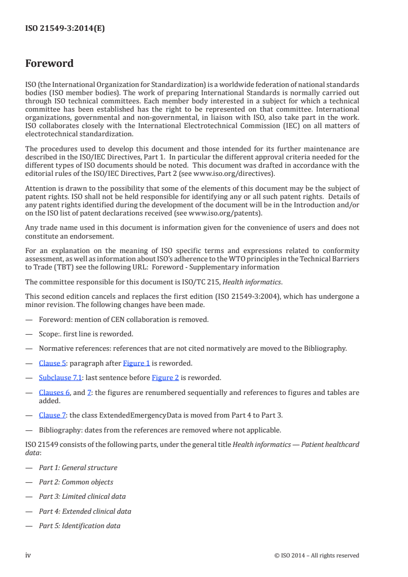 ISO 21549-3:2014 - Health informatics — Patient healthcard data — Part 3: Limited clinical data Released:1/31/2014