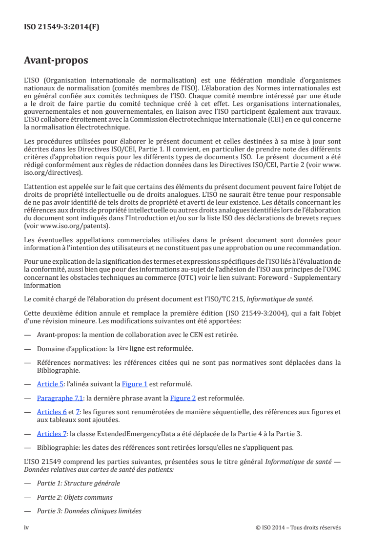 ISO 21549-3:2014 - Informatique de santé — Données relatives aux cartes de santé des patients — Partie 3: Données cliniques limitées Released:1/31/2014
