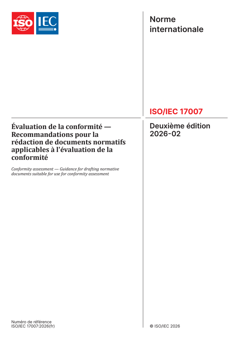 ISO/IEC 17007:2026 - Évaluation de la conformité — Recommandations pour la rédaction de documents normatifs applicables à l'évaluation de la conformité