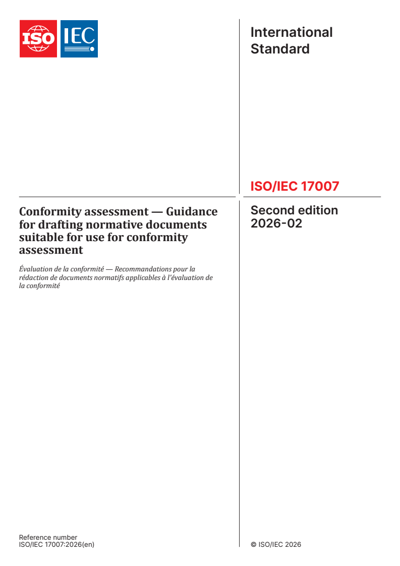 ISO/IEC 17007:2026 - Conformity assessment — Guidance for drafting normative documents suitable for use for conformity assessment