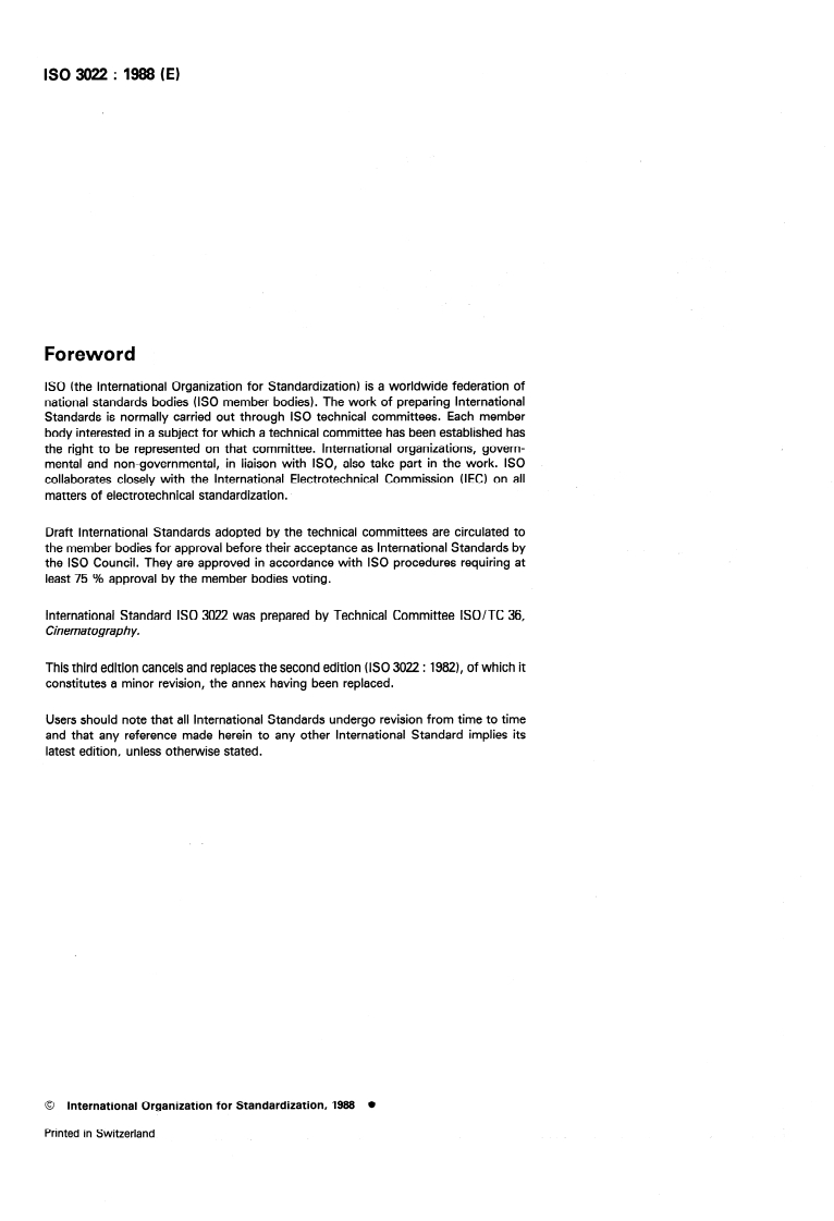 ISO 3022:1988 - Cinematography — 35 mm motion-picture film perforated 16 mm (1-3-0) — Cutting and perforating dimensions Released:10/27/1988