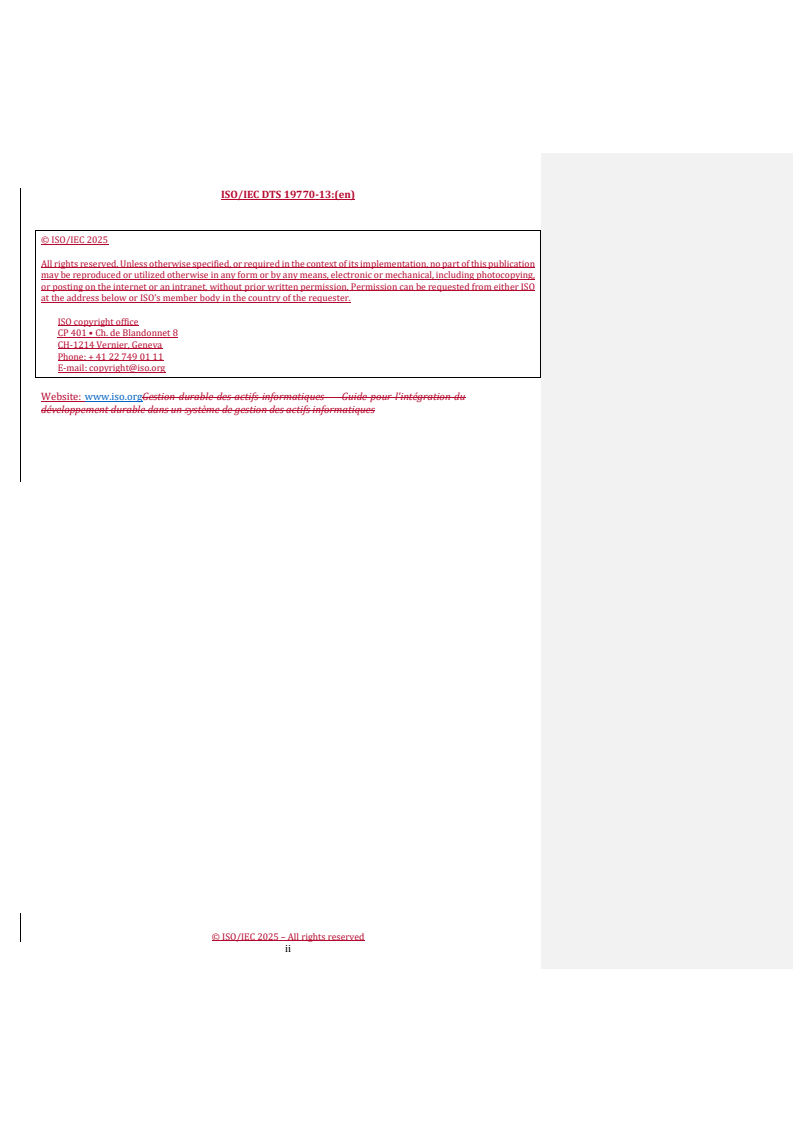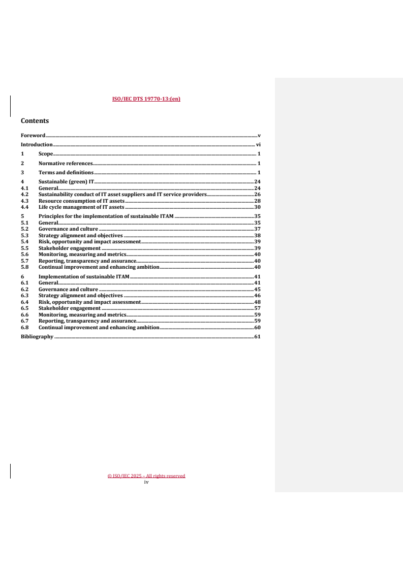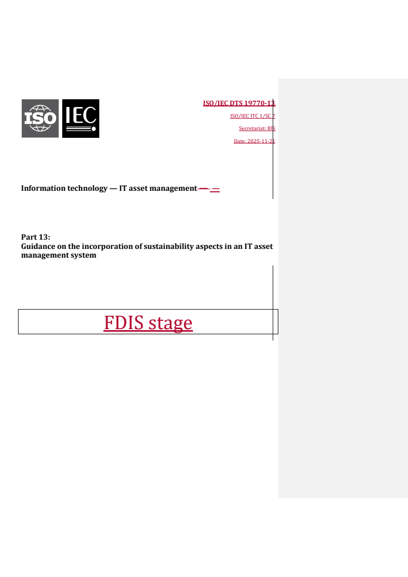 REDLINE ISO/IEC DTS 19770-13 - Information technology — IT asset management — Part 13: Guidance on the incorporation of sustainability aspects in an IT asset management system Released:11/24/2025