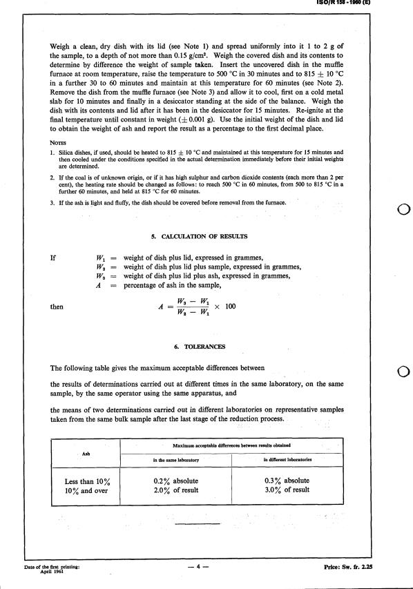 The IS0 Recommendation R 158, Determination of Ash of Hard Coal, was drawn up by