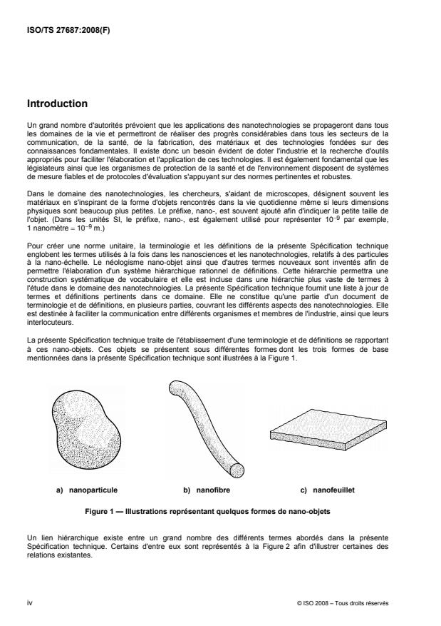 L'ISO/TS 27687:2008 donne la liste des termes et définitions concernant les particules appartenant au domaine des nanotechnologies. Elle est destinée à faciliter la communication entre différents organismes et membres de l'industrie, ainsi que leurs interlocuteurs.