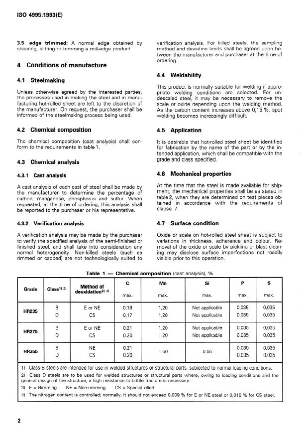 4) La teneur en azote est contrblée; normalement, elle ne doit pas excéder 0,009 % pour l’acier E ou NE, et 0,015 % pour