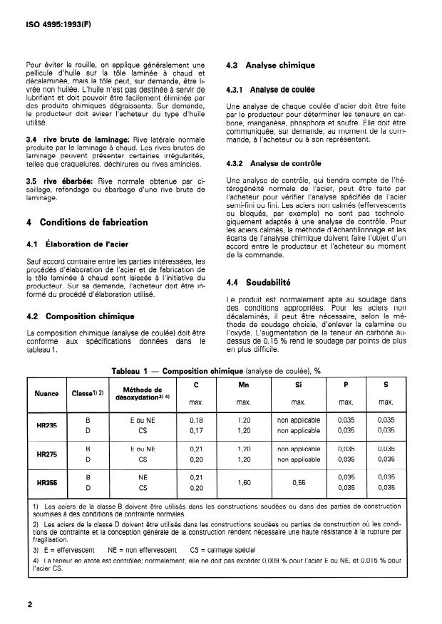 4.2 Composition chimique décalaminés, il peut être nécessaire, selon la mé-