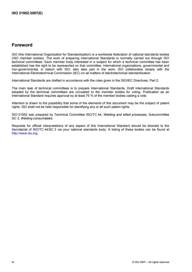 ISO 21952:2007 is classified under the following ICS (International Classification for Standards) categories: 25.160.20 - Welding consumables. The ICS classification helps identify the subject area and facilitates finding related standards.