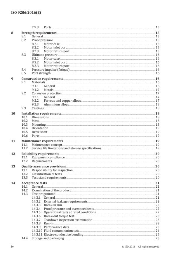 ISO 9206:2016 establishes the general requirements for constant displacement hydraulic motors, suitable for use in aircraft hydraulic systems at pressures up to 35 000 kPa (5 000 psi). Primary and secondary function motors are covered in ISO 9206:2016; however, actuators with internal rotation angle limits and low-speed motors are not covered. ISO 9206:2016 is to be used in conjunction with the detail specification that is particular to each application.