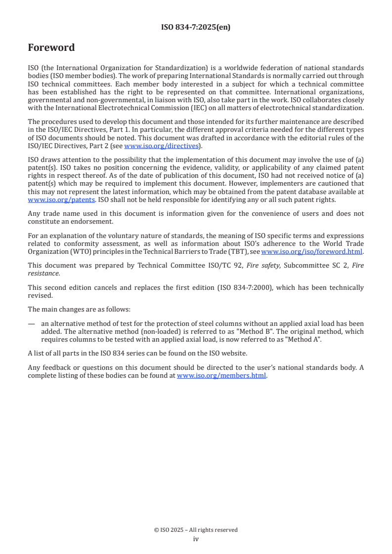 Keywords: ISO 834-7:2025, fire-resistance tests, columns, test method A, test method B, protected steel columns, axial load, specimen preparation, furnace instrumentation, fire protection systems.