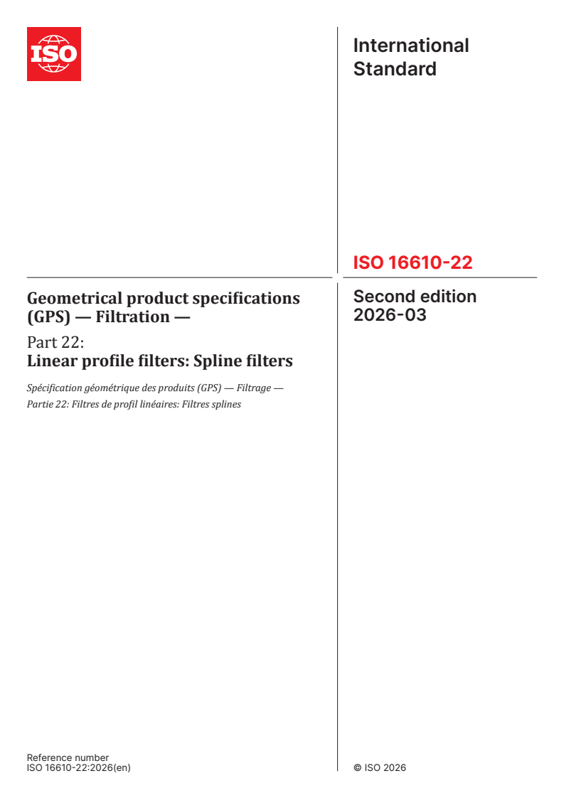 ISO 16610-22:2026 - Geometrical product specifications (GPS) — Filtration — Part 22: Linear profile filters: Spline filters